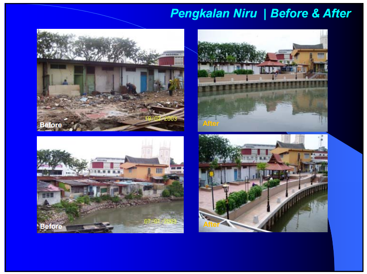 Tebing Sungai Melaka telah di piling some 12 meter deep, dibaik pulih dari kadaaan asal.
